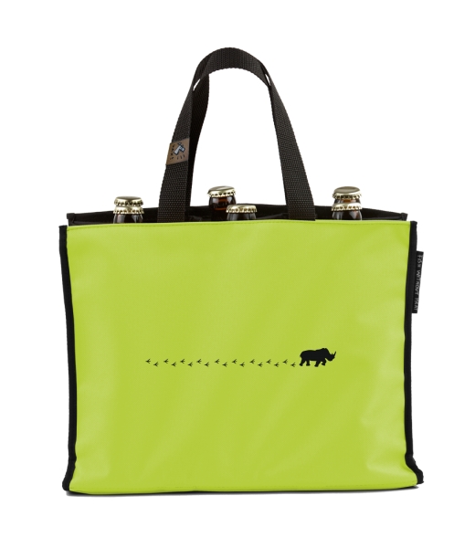 BEER CARRIER - bag for beer with design 1172 RHINO CAMOUFLAGE in color GREEN LIMET
