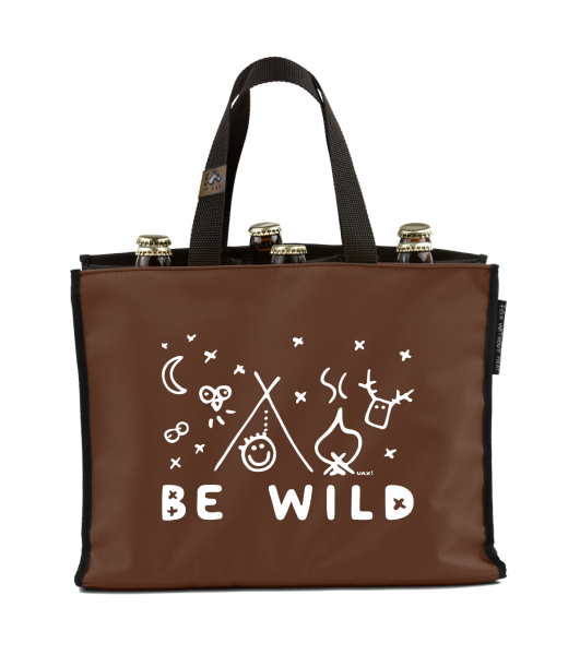 BEER CARRIER - bag for beer with design 1174 BE WILD in color BROWN SUGAR