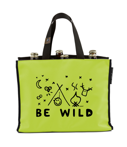 BEER CARRIER - bag for beer with design 1174 BE WILD in color GREEN LIMET