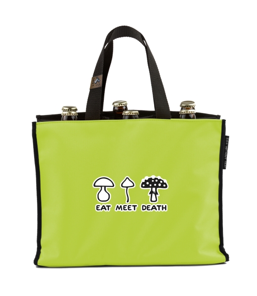 BEER CARRIER - bag for beer with design 1177 EAT MEET DEATH in color GREEN LIMET
