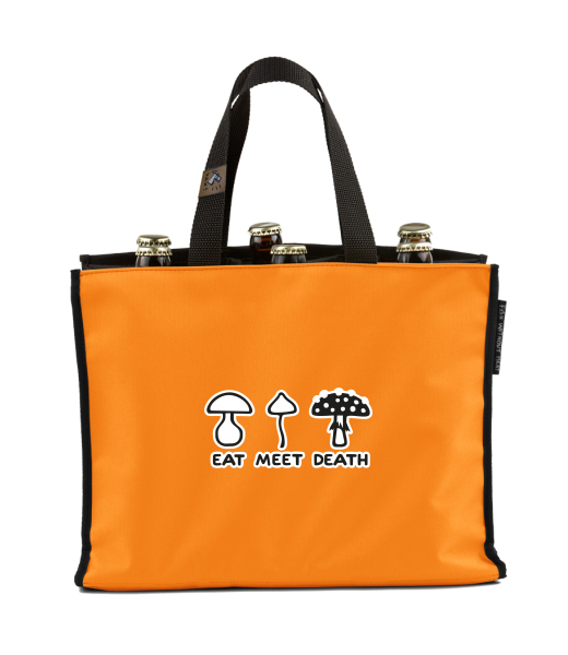 BEER CARRIER - bag for beer with design 1177 EAT MEET DEATH in color SIGNAL ORANGE
