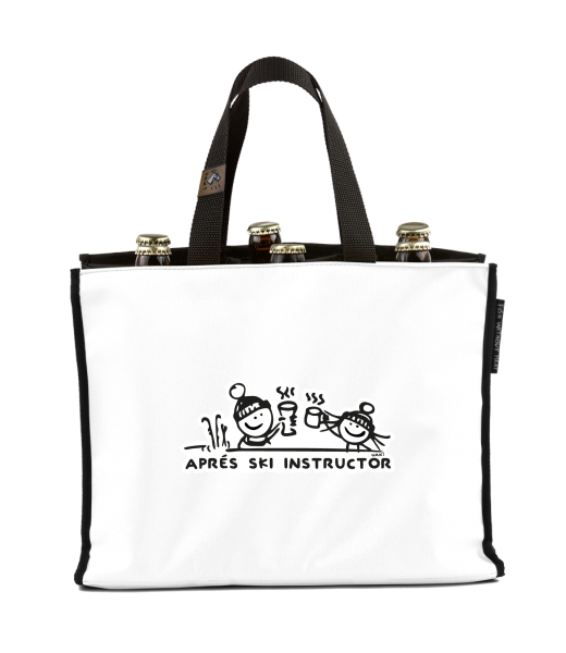 BEER CARRIER - bag for beer with design 1180 APRÉS SKI INSTRUCTOR in color WHITE