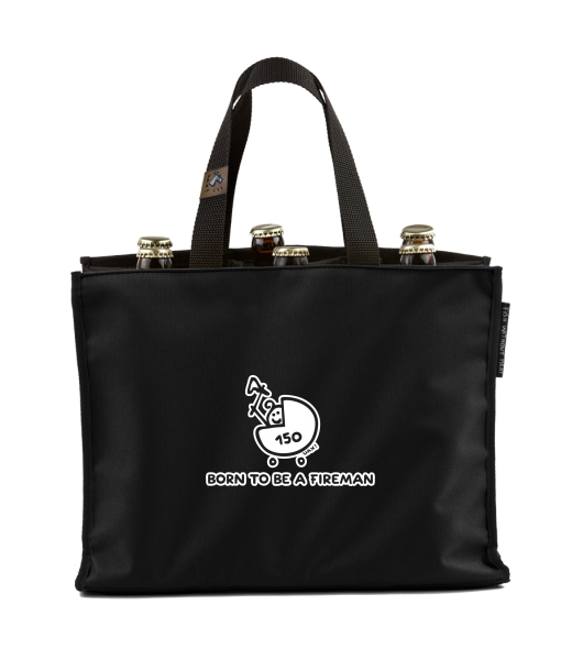 BEER CARRIER - bag for beer with design 1184 BORN TO BE A FIREMAN in color BLACK