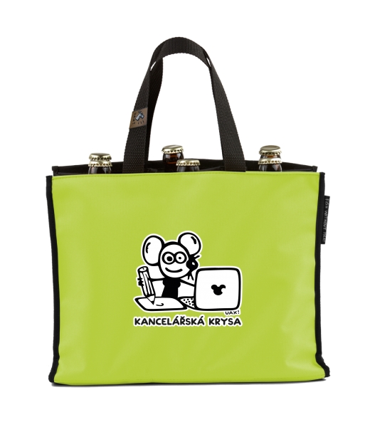 BEER CARRIER - bag for beer with design 1191 KANCELÁŘSKÁ KRYSA in color GREEN LIMET