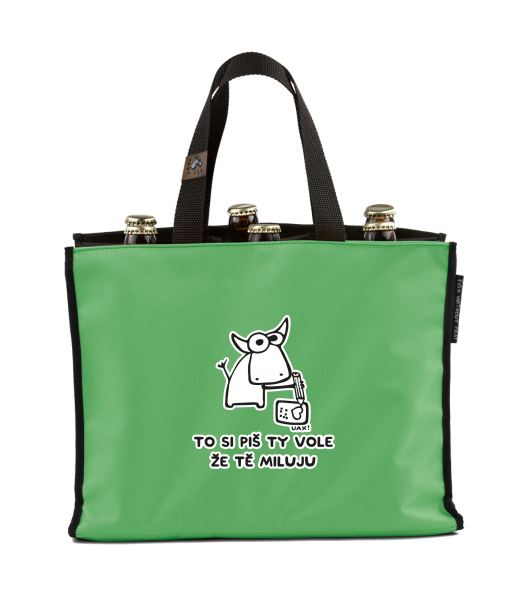 BEER CARRIER - bag for beer with design 1192 TO SI PIŠ TY VOLE ŽE TĚ MILUJU in color BRIGHT GREEN
