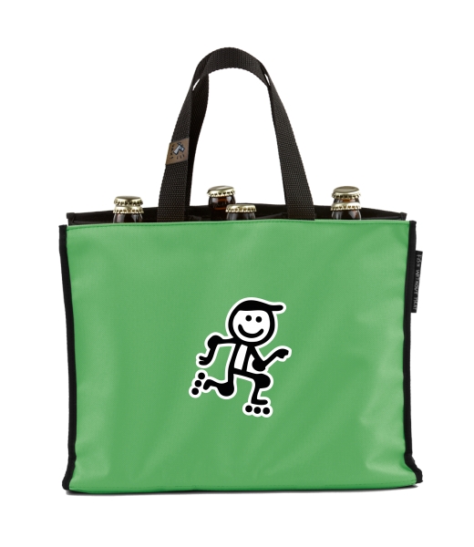 BEER CARRIER - bag for beer with design 1194 ROLLER MEN in color BRIGHT GREEN