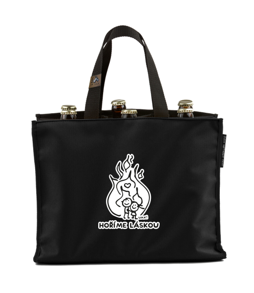 BEER CARRIER - bag for beer with design 1208 HOŘÍME LÁSKOU in color BLACK