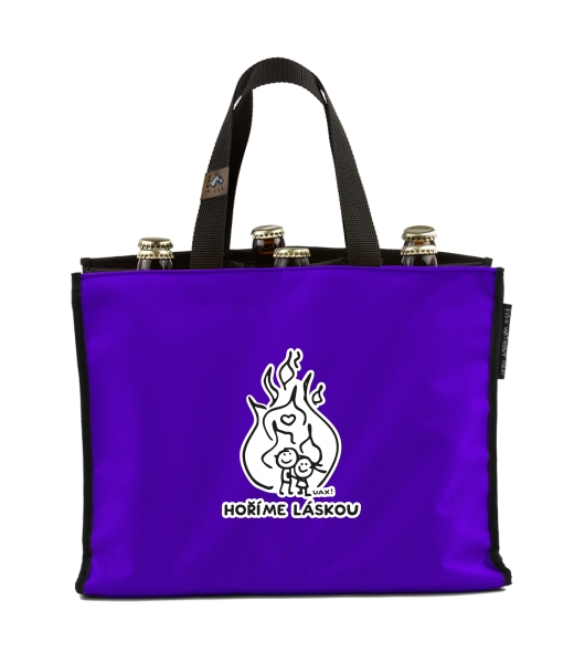 BEER CARRIER - bag for beer with design 1208 HOŘÍME LÁSKOU in color VIOLET