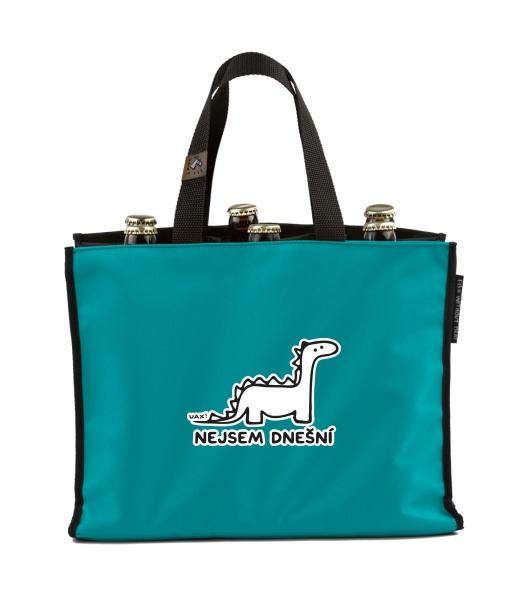 BEER CARRIER - bag for beer with design 1209 NEJSEM DNEŠNÍ in color TURQUOISE