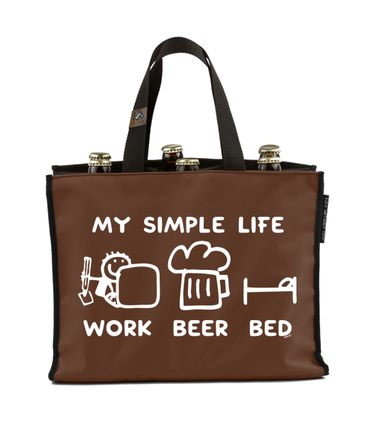 BEER CARRIER - bag for beer with design 1211 MY SIMPLE LIFE WORK BEER BED in color BROWN SUGAR