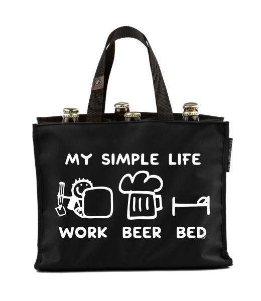 BEER CARRIER - bag for beer with design 1211 MY SIMPLE LIFE WORK BEER BED in color BLACK