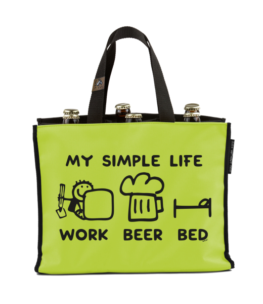 BEER CARRIER - bag for beer with design 1211 MY SIMPLE LIFE WORK BEER BED in color GREEN LIMET