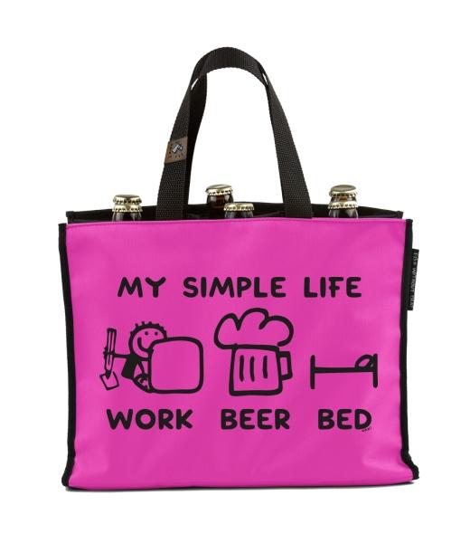 BEER CARRIER - bag for beer with design 1211 MY SIMPLE LIFE WORK BEER BED in color INDIAN LILA