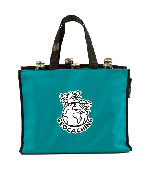 BEER CARRIER - bag for beer with design 1215 GEOCACHING in color TURQUOISE