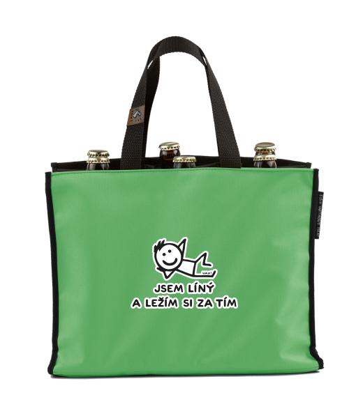 BEER CARRIER - bag for beer with design 1217 JSEM LÍNÝ A LEŽÍM SI ZA TÍM in color BRIGHT GREEN