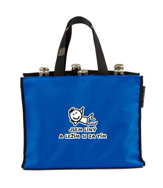 BEER CARRIER - bag for beer with design 1217 JSEM LÍNÝ A LEŽÍM SI ZA TÍM in color CLASSIC BLUE