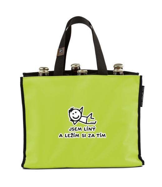 BEER CARRIER - bag for beer with design 1217 JSEM LÍNÝ A LEŽÍM SI ZA TÍM in color GREEN LIMET