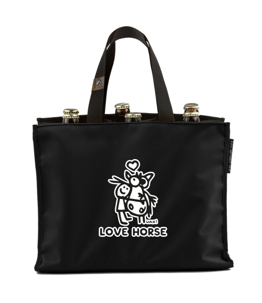 BEER CARRIER - bag for beer with design 1219 LOVE HORSE in color BLACK