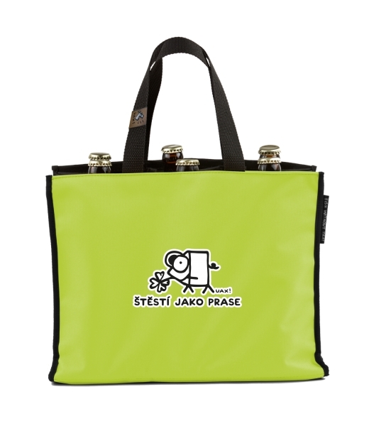 BEER CARRIER - bag for beer with design 1220 ŠTĚSTÍ JAKO PRASE in color GREEN LIMET