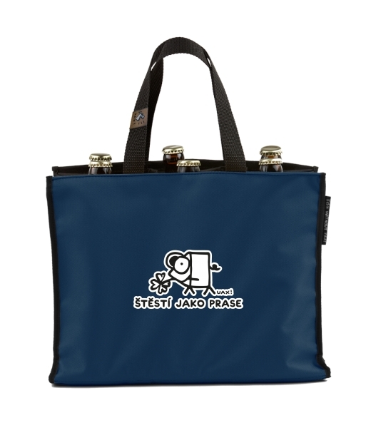 BEER CARRIER - bag for beer with design 1220 ŠTĚSTÍ JAKO PRASE in color MIDNIGHT BLUE