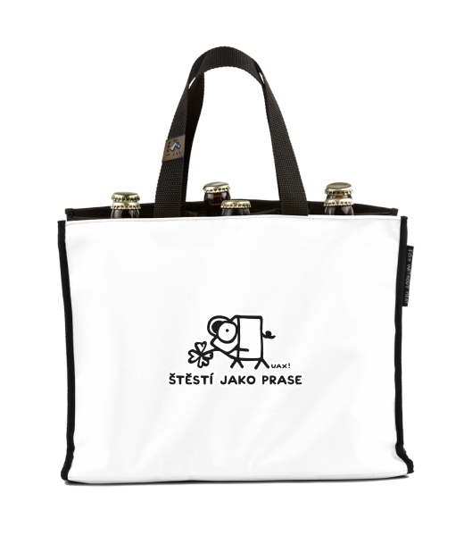BEER CARRIER - bag for beer with design 1220 ŠTĚSTÍ JAKO PRASE in color WHITE