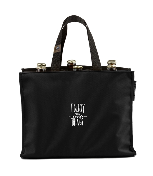 BEER CARRIER - bag for beer with design 1222 ENJOY THE LITTLE THINGS in color BLACK