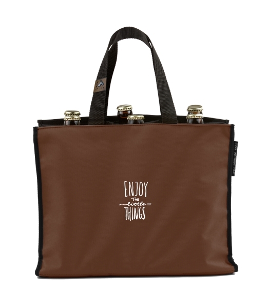 BEER CARRIER - bag for beer with design 1222 ENJOY THE LITTLE THINGS in color BROWN SUGAR