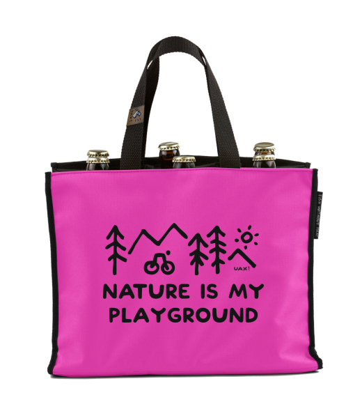BEER CARRIER - bag for beer with design 1223 NATURE IS MY PLAYGROUND in color INDIAN LILA
