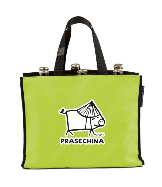 BEER CARRIER - bag for beer with design 1226 PRASECHINA in color GREEN LIMET