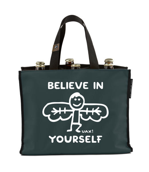 We make sustainable UAX clothing! - hand sewn in the Czech Republic uaxAccessories uaxAll productsBags and sacksBEER CARRIERdesign 1228 - BELIEVE IN YOURSELFGREY INK
