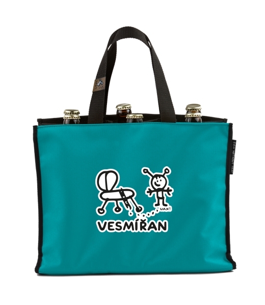 BEER CARRIER - bag for beer with design 1232 VESMÍŘAN in color TURQUOISE