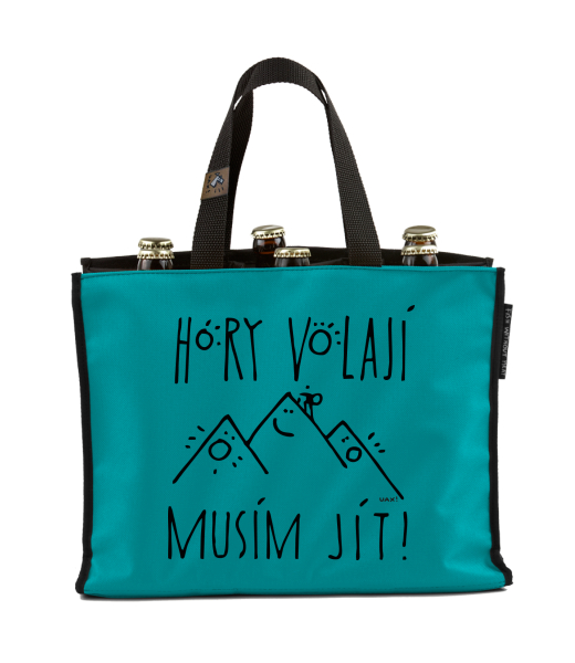 BEER CARRIER - bag for beer with design 1233 HORY VOLAJÍ MUSÍM JÍT in color TURQUOISE