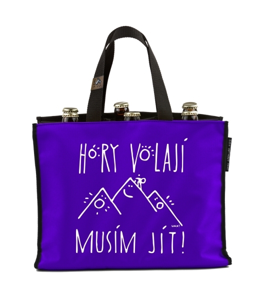 BEER CARRIER - bag for beer with design 1233 HORY VOLAJÍ MUSÍM JÍT in color VIOLET