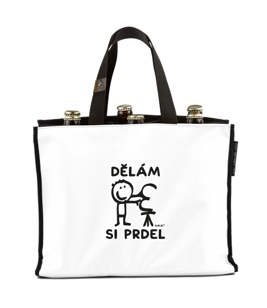 BEER CARRIER - bag for beer with design 1235 DĚLÁM SI PRDEL in color WHITE