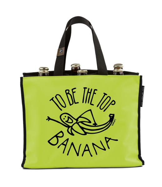 BEER CARRIER - bag for beer with design 1238 TO BE THE TOP BANANA in color GREEN LIMET