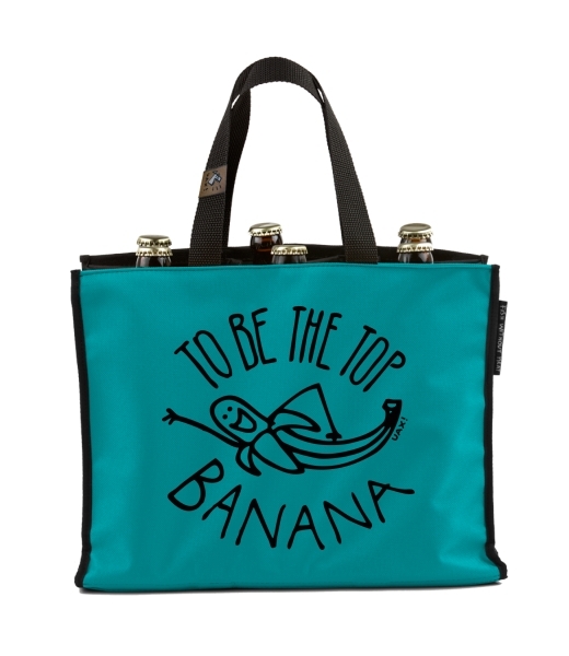 BEER CARRIER - bag for beer with design 1238 TO BE THE TOP BANANA in color TURQUOISE