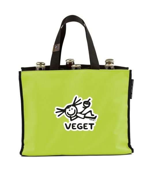 BEER CARRIER - bag for beer with design 1239 VEGET in color GREEN LIMET