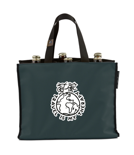 BEER CARRIER - bag for beer with design 1240 TRAVEL IS MY THERAPY in color GREY INK