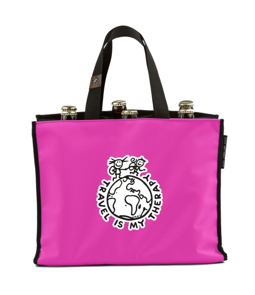 BEER CARRIER - bag for beer with design 1240 TRAVEL IS MY THERAPY in color INDIAN LILA