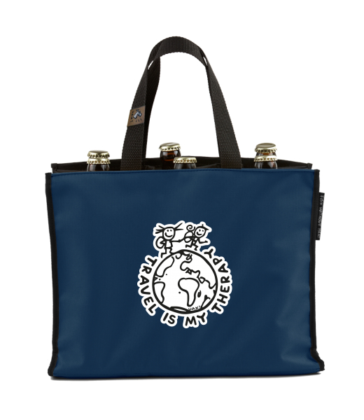 BEER CARRIER - bag for beer with design 1240 TRAVEL IS MY THERAPY in color MIDNIGHT BLUE
