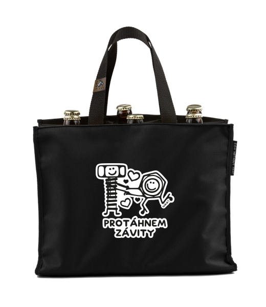 BEER CARRIER - bag for beer with design 1242 PROTÁHNEM ZÁVITY in color BLACK