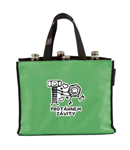 BEER CARRIER - bag for beer with design 1242 PROTÁHNEM ZÁVITY in color BRIGHT GREEN