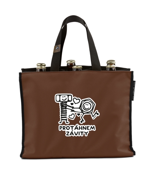 BEER CARRIER - bag for beer with design 1242 PROTÁHNEM ZÁVITY in color BROWN SUGAR