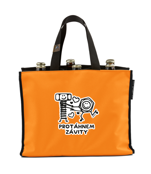 BEER CARRIER - bag for beer with design 1242 PROTÁHNEM ZÁVITY in color SIGNAL ORANGE
