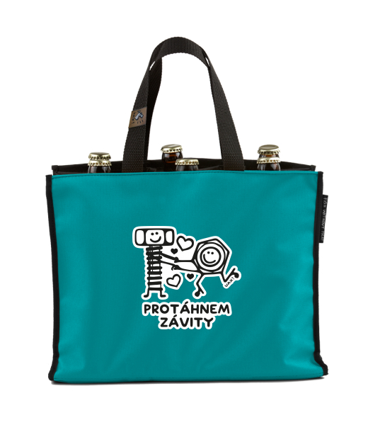 BEER CARRIER - bag for beer with design 1242 PROTÁHNEM ZÁVITY in color TURQUOISE