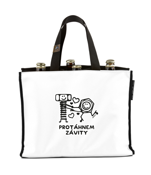 BEER CARRIER - bag for beer with design 1242 PROTÁHNEM ZÁVITY in color WHITE