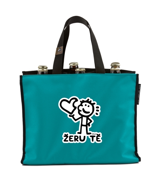 BEER CARRIER - bag for beer with design 1244 ŽERU TĚ in color TURQUOISE