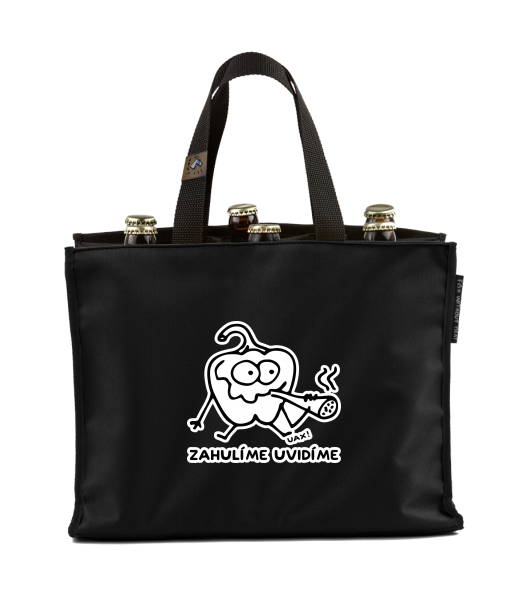 BEER CARRIER - bag for beer with design 1246 ZHULÍME UVIDÍME in color BLACK