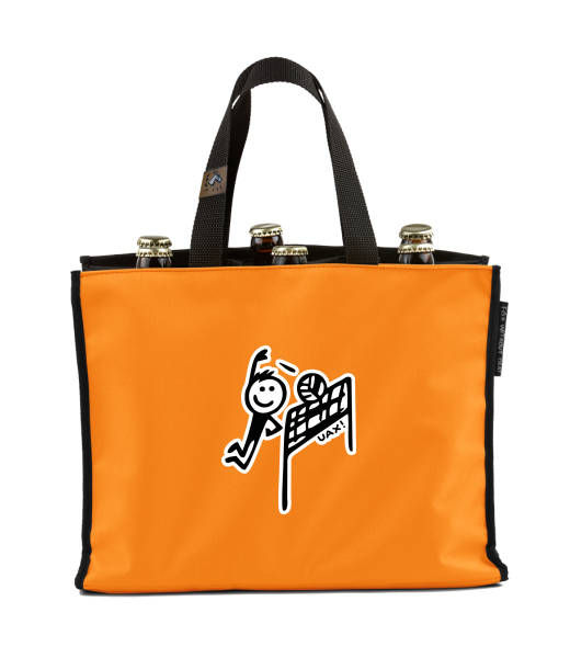 BEER CARRIER - bag for beer with design 1250 VOLEJBAL in color SIGNAL ORANGE