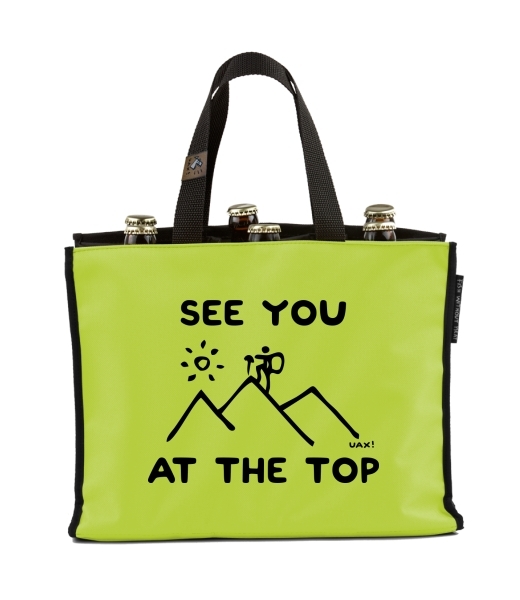 We make sustainable UAX clothing! - hand sewn in the Czech Republic uaxAccessories uaxAll productsBags and sacksBEER CARRIERdesign 1263 - SEE YOU AT THE TOPGREEN LIMET